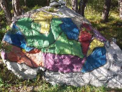 Auf diesem Felsen sind 3 Felder … (C) bemalt.