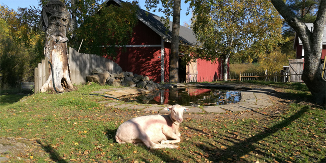 Kahvia...Vaikka Eiffel-torni parkkipaikalla ja mammutti pihapolulla muistuttavat vielä vanhasta pajutilasta, meininki tilalla on tänä päivänä muuten hyvin erilaista. Pihamaalla vierailijoita tervehtii entistä isompi lammaskatras ja ladossa pajuesineet ovat saaneet väistyä muiden tuotteiden ja kiipeilijöiden tieltä.