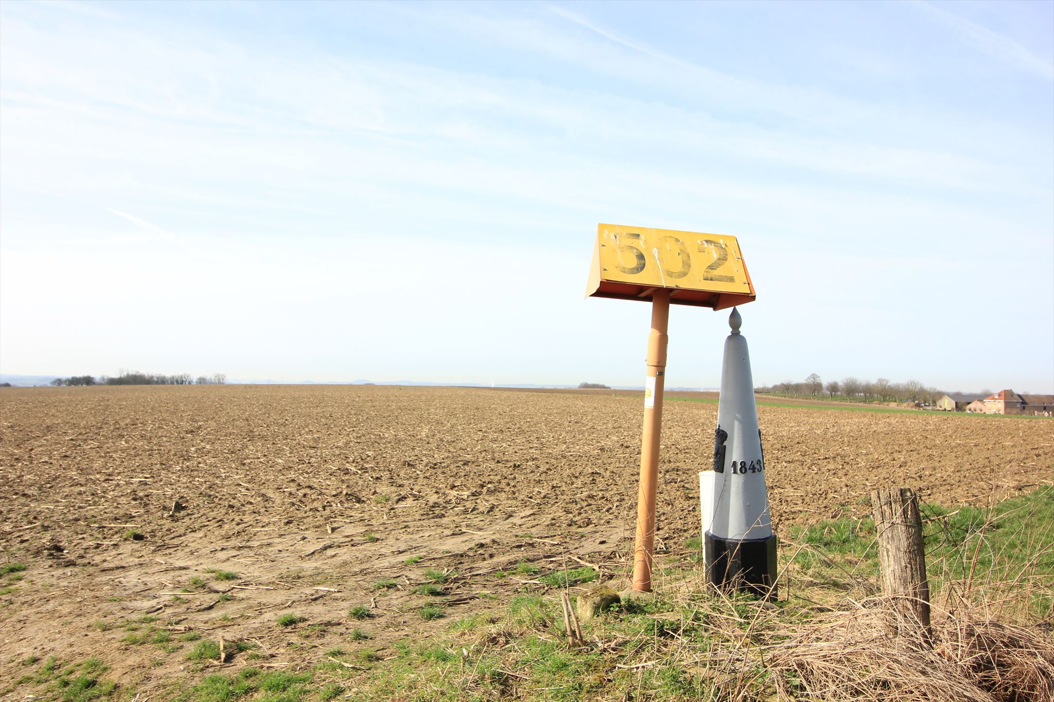 Grenspaal 28 staat midden tussen de akkers van Eijsden-Margraten en de gemeente Voeren. Van hieruit heb je prachtige vergezichten over de Mescherheide richting Maastricht, Luik en het land van Herve.