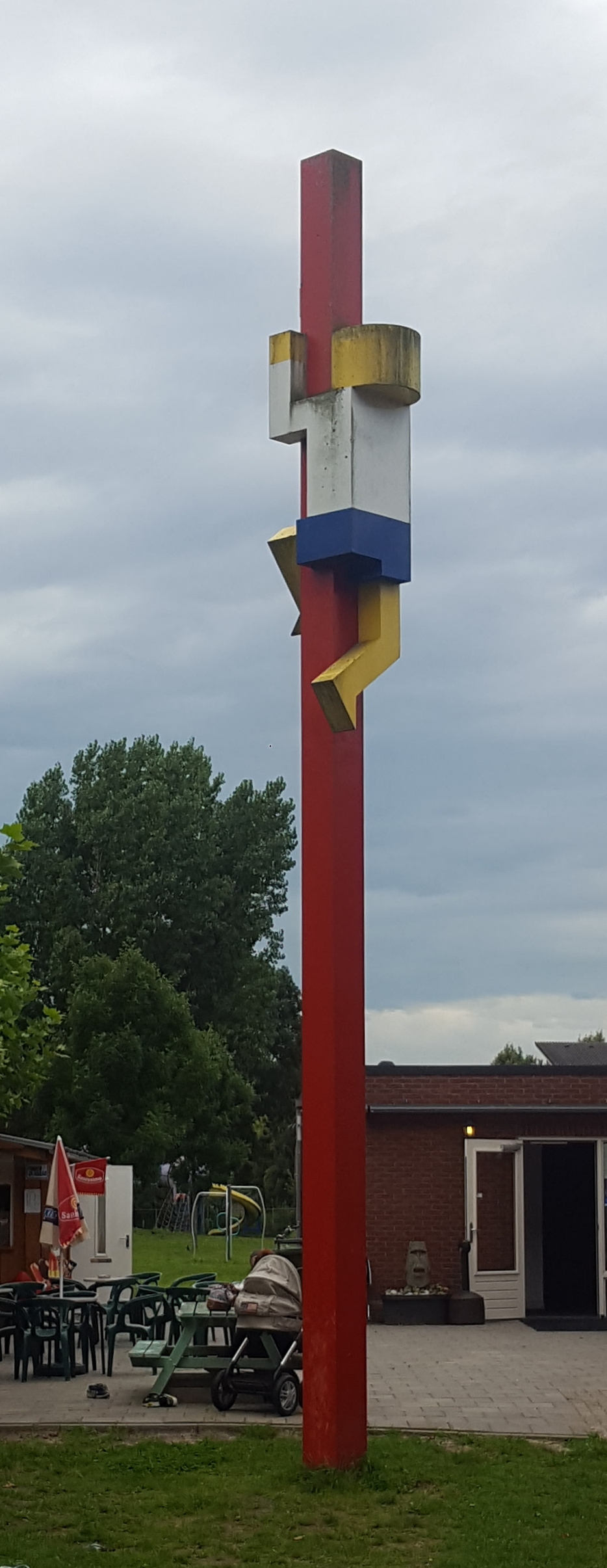 Achter het kunstwerk staat een rij van 5 huizen. Wat is het hoogste huisnummer? Dit is A226.
