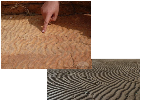 Principle of Superposition: a principle in which it is assumed that non-deformed strata of sedimentary rocks, which are superimposed on others, are more recent than the others. This principle was enunciated by Nicolaus Steno. However, there are situations where the overlapping principle does not apply: river terraces, folds, dikes and deposits filling karst cavities. These exceptional situations lead to the need for geologists to resort for other assessment criteria, such as ripple marks, root and fossil marks that indicate whether the strata are inverted or in their original position.