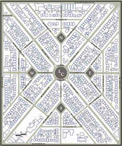 Ladd's Addition makes for an interesting aerial view. At it's heart is a circle, with four diamonds surrounding it. The circle contains Ladd Circle, a great place to spread out a blanket on a sunny day. Each diamond is a rose garden packed with interesting varieties of roses. Your mission, should you choose to accept it, is to visit Ladd's Circle and all four rose gardens. There, you'll need to answer the questions below to deduce the location of the final cache container.