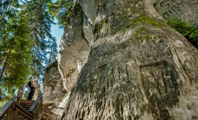 One of Latvia's most beautiful rocks is also called one of the highest. Har gived name to the nearby Sietiņi houses, the name comes from the fact that the rock is abundantly excavated. Extremely diverse, there are many strange shapes, caves, poles, niches, arches, a point of view from the highest place.