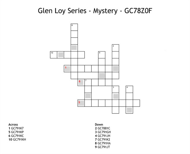 In Glen Loy Forest there are 10 caches ( 8 Traditional, 1 letterbox and 1 multi-cache) hidden in different cache containers which are all clues for the puzzle here that needs to be solved . Once solved the letters highlighted in the crossword puzzle are an anagram of a 10 letter word which when entered into certitude the final co-ordinates are given.