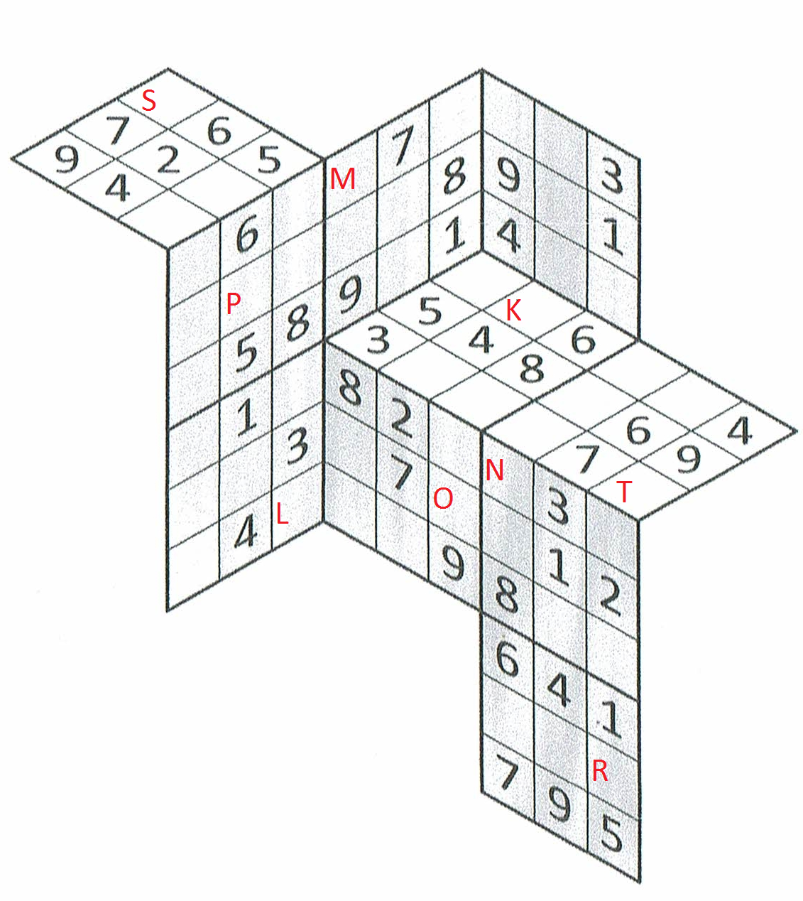 Fülle die leeren Felder so aus, dass in jeder Zeile und in jeder Spalte sowie in jedem der Quadrate, die aus 3x3 Kästchen bestehen, Alle Ziffern von 1 bis 9 genau einmal vorkommen.