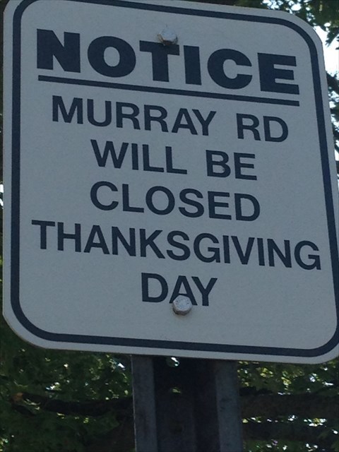 For many years, I have taken this little backdoor to get to Route 10 businesses and spotted this sign and wondered why this road would be closed on Thanksgiving Day. The only theory that I can come up with is these warehouses used to have a lot of activity on Thanksgiving Day delivering goods for Black Friday. Anyway, answer the puzzles below about Murrays to get the coordinate to the final cache at: