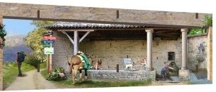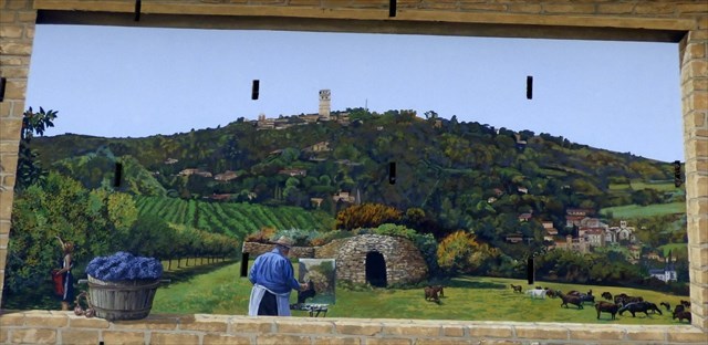 L’eau a toujours été l’une des plus grandes richesses du Massif des Monts d’Or. C’est elle qui a attiré les premières peuplades ; un des 4 grands aqueducs souterrains qui alimentaient Lugdunum l’a ensuite traversé sur une longueur de 26km et avec un débit de 10 000m3 par jour. Ce coin de fresque autour de l’eau est d’ailleurs le plus vivant avec le cheval venu se désaltérer et les enfants jouant autour.