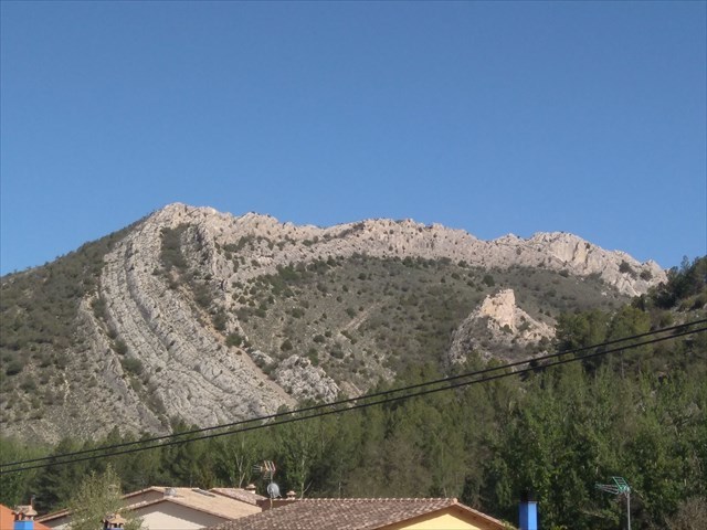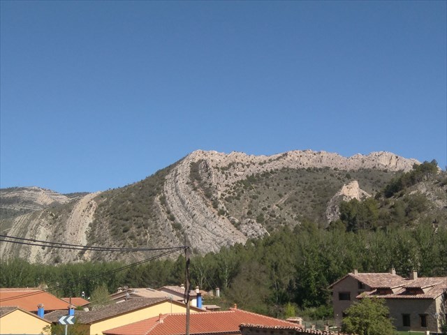 En nuestra propuesta de Earthcaché, las coordenadas conducen a un punto del casco urbano de Aliaga, desde el que se aprecia el pliegue con nitidez. Sin embargo, es posible ver este pliegue desde distintos puntos de la población, lo cual ayuda a tener diversas perspectivas de tan peculiar estructura geológica. Recomendamos dar un pequeño paseo por dicho casco urbano e, incluso, iniciar el sendero que sube hasta el castillo, para tener buenas vistas del pliegue.