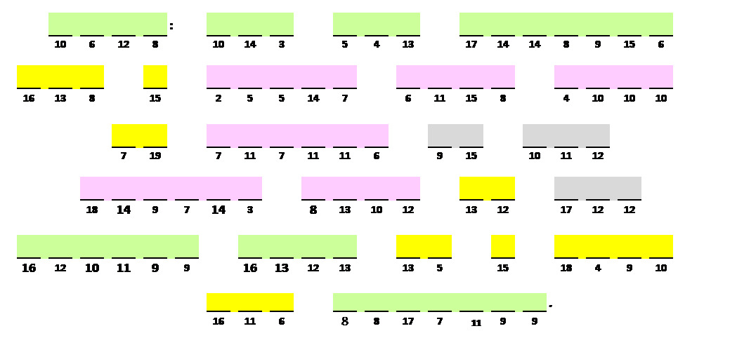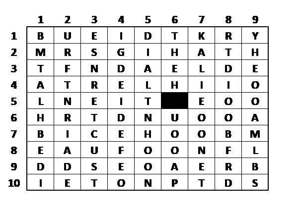 Each of the letters in the diagram has a numerical value, which you can calculate by adding the number of the row and the column in which the letter is shown. For example, a K is in the 1st row and the 7th column of the diagram and therefore it has a value of 8. Other K’s may have different values. Each 8 may stand for a different letter.
