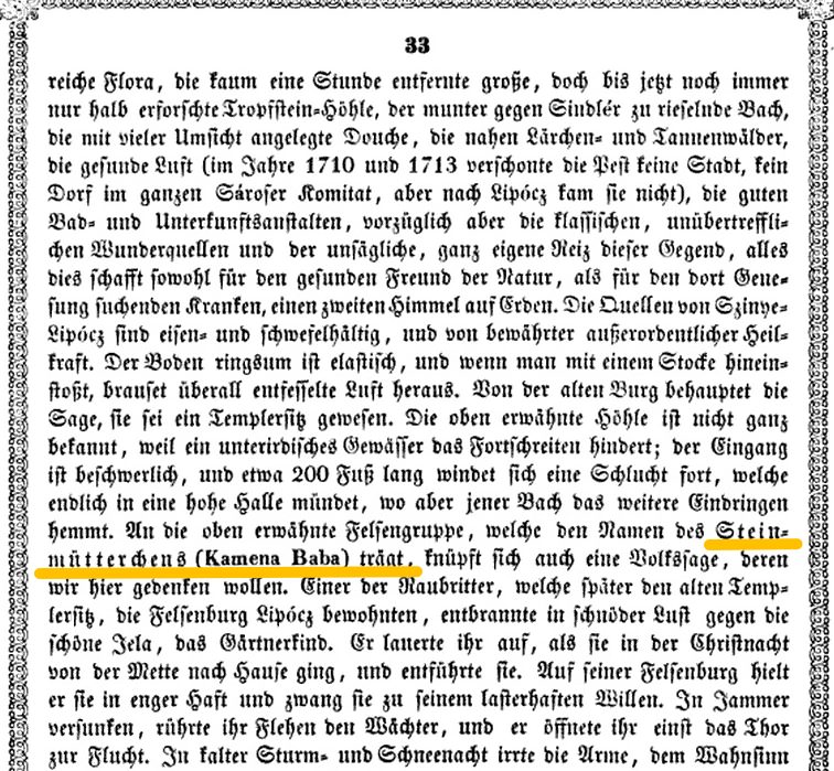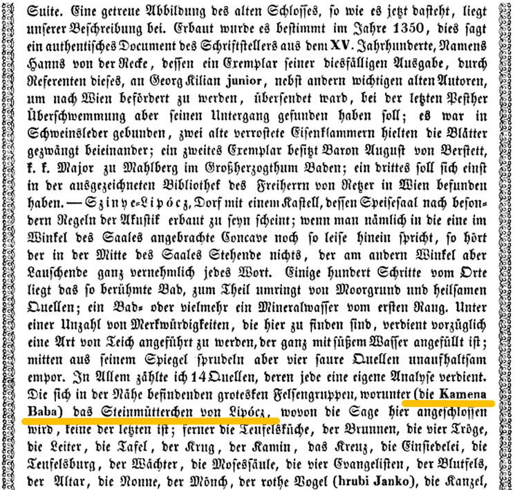Prvá knižná zmienka o tomto prírodnom výtvore pochádza z monografie od E.T.T. Kriegera - “Šarišská stolica v Hornom Uhorsku.” v origináli “Das Sároser Komitat in Ober Ungarn”, ktorá vyšla vo Viedni v roku 1841.
