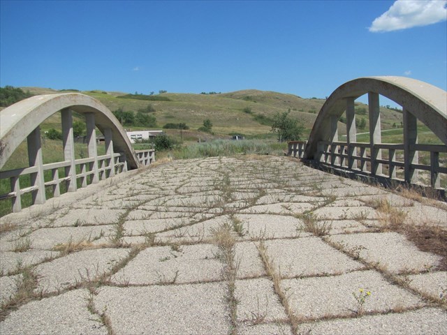 This bridge is a sample of one of the nearly 90 concrete "bowstring bridges" that were constructed in Southern Saskatchewan in the 20's and 30's. This type of bridge was typically used at low-bank crossings such as prairie streams.