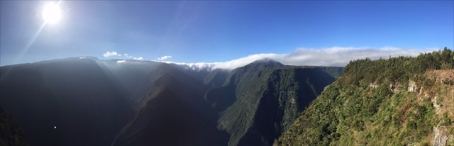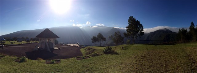 Du belvédère de Bois-Court, la vue plonge sur l’îlet de Grand-Bassin. À la suite de la rencontre du bras-sec (Cilaos), du bras de Sainte-Suzanne et du bras des Roches-Noires, cette plaine profonde est née.