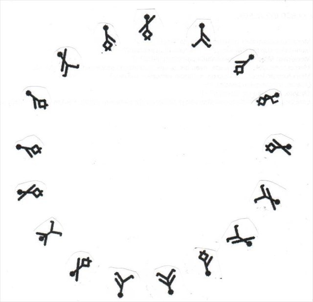Megareissulla Lapissa tuli nähtyä jossain museossa noitarumpuja. Ajattelin, että ensi talvena askartelen itsellenikin sellaisen. Heti reissusta kotiin päästyä piirtelin hauskoja tikku-ukkoja ja yritin sommitella niitä kivaan asentoon. Tämä oli mielestäni kaikkein onnistunein, mutta lieneekö turhan symmetrinen.