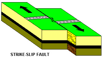 The fault plane shows polished rock surfaces bearing fine horizontal scratches, known as slickensides. These markings indicate that the two blocks of rock dislocated by the fault have moved laterally against one another. This fact makes the fault additionally interesting, as it is an unusual fault type, called transcurrent or strike-slip. The most famous fault of this type is the notorious San Andreas fault in California.