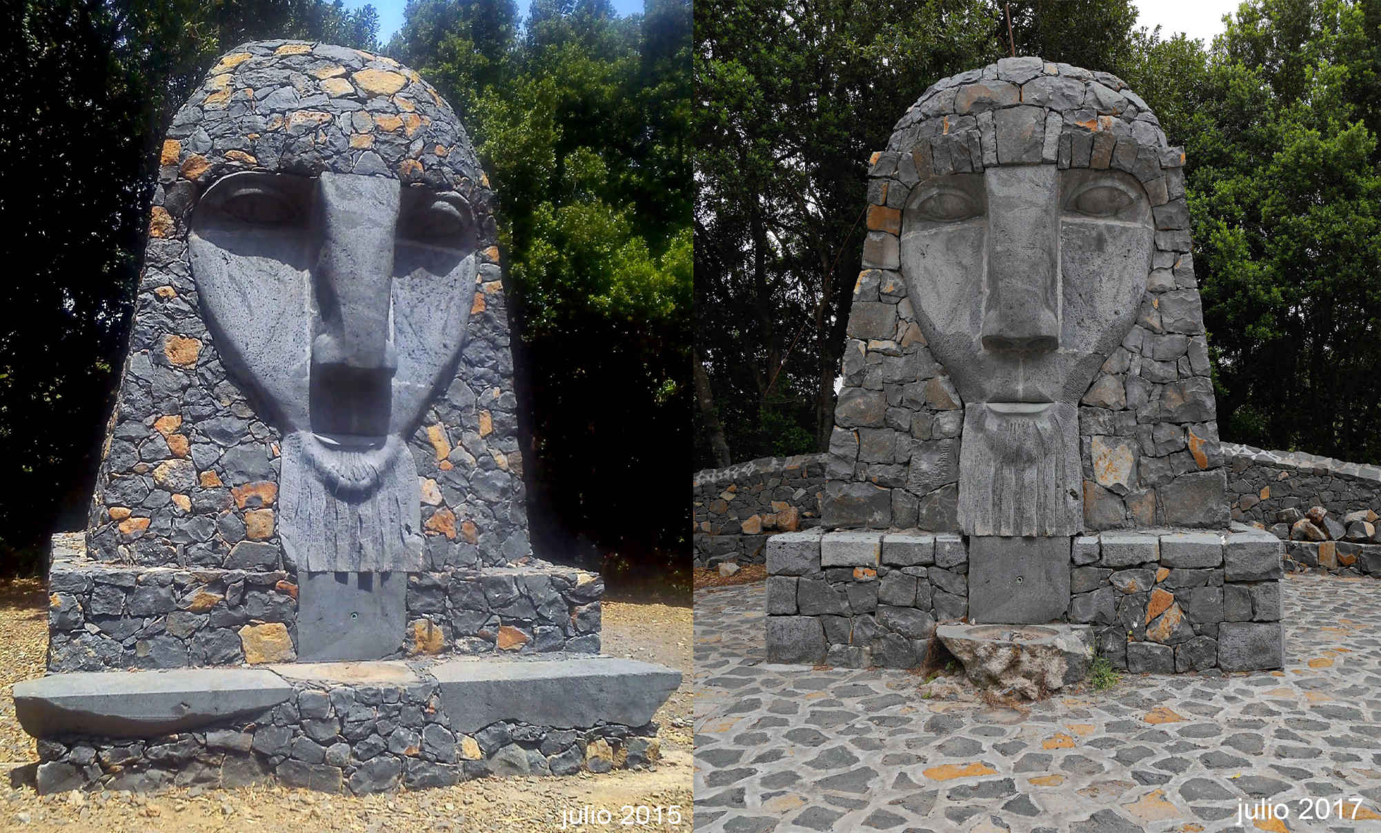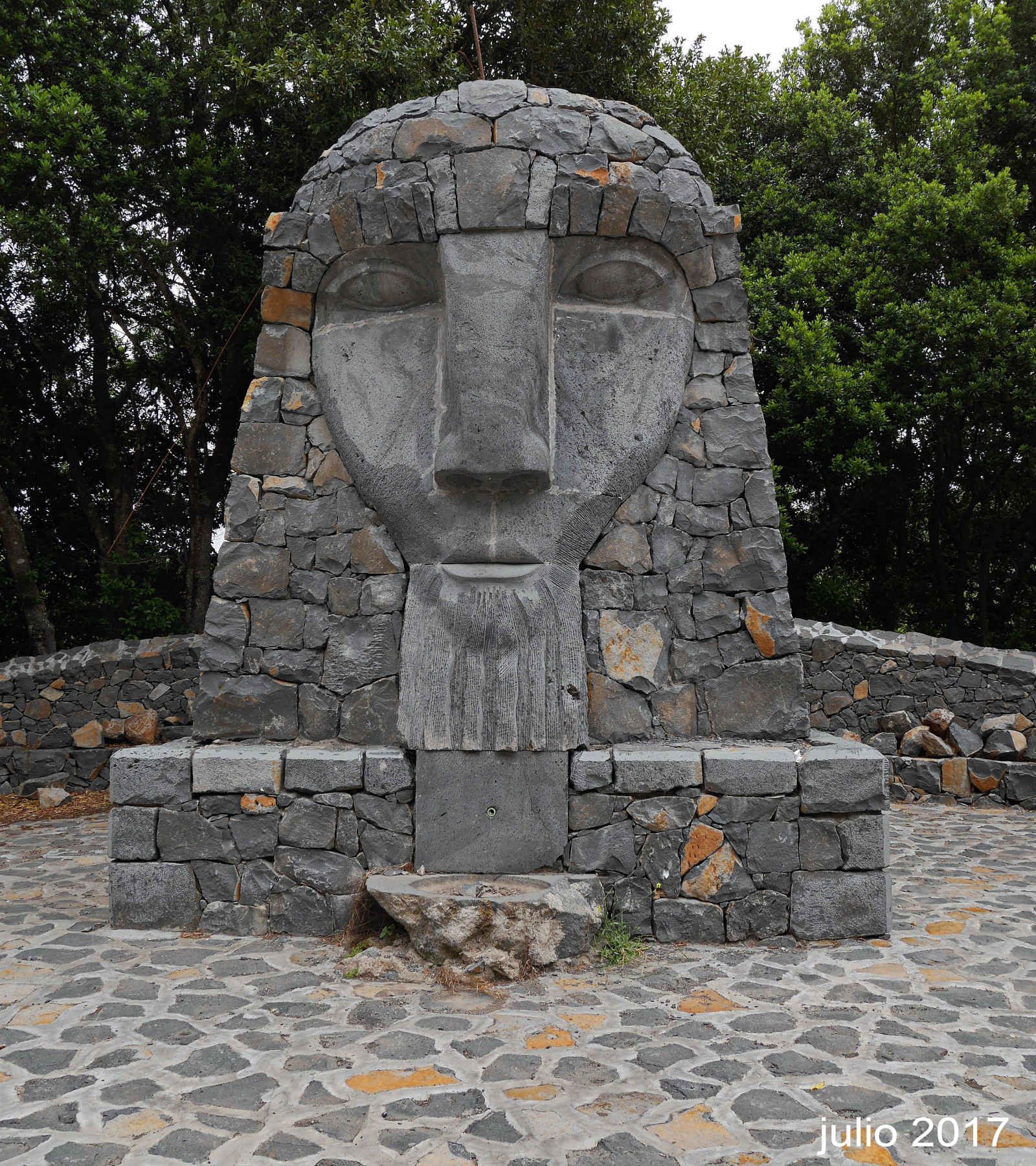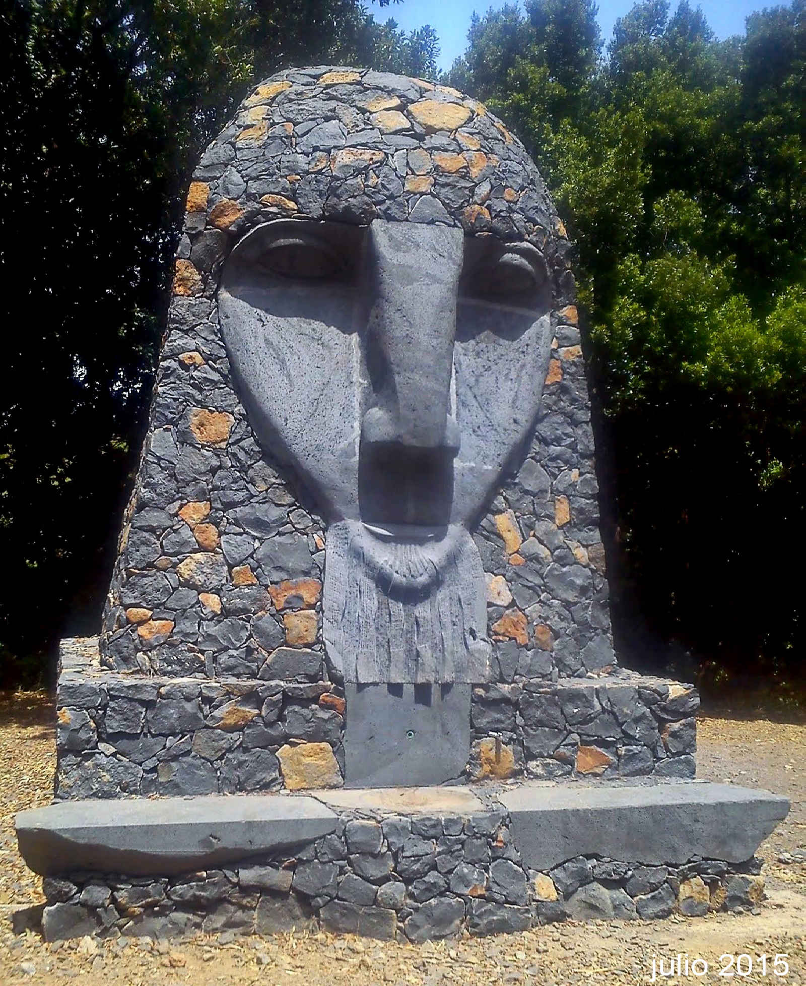 Justo en frente del acceso al Parque Cultural La Zarza y La Zarcita, nos encontramos con un apartadero en el que han colocado una obra escultórica de Jorge Beda Morcillo Juliani, titulada “Atlas o La Cabeza del Mago”, realizada en piedra volcánica tallada y mampostería de piedra y fechada en el año 2014. Como en otros muchos casos, esta obra no está exenta de controversias, tal y como menciona el profesor Celestino Celso Hernández (al que tuve el placer de conocer cómo Director del Museo de Arte Contemporáneo Eduardo Westerdahl MACEW, del Puerto de La Cruz) en su blog Arte y Canarias, considerándola como una desacertada incorporación escultórica en la carretera: