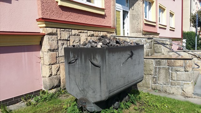 Na jihozápadní straně stojí Hornický dům, zdobený fasádními reliéfy a na střeše je malá vežička. Před domem je symbol hornické činnosti - HUNT.