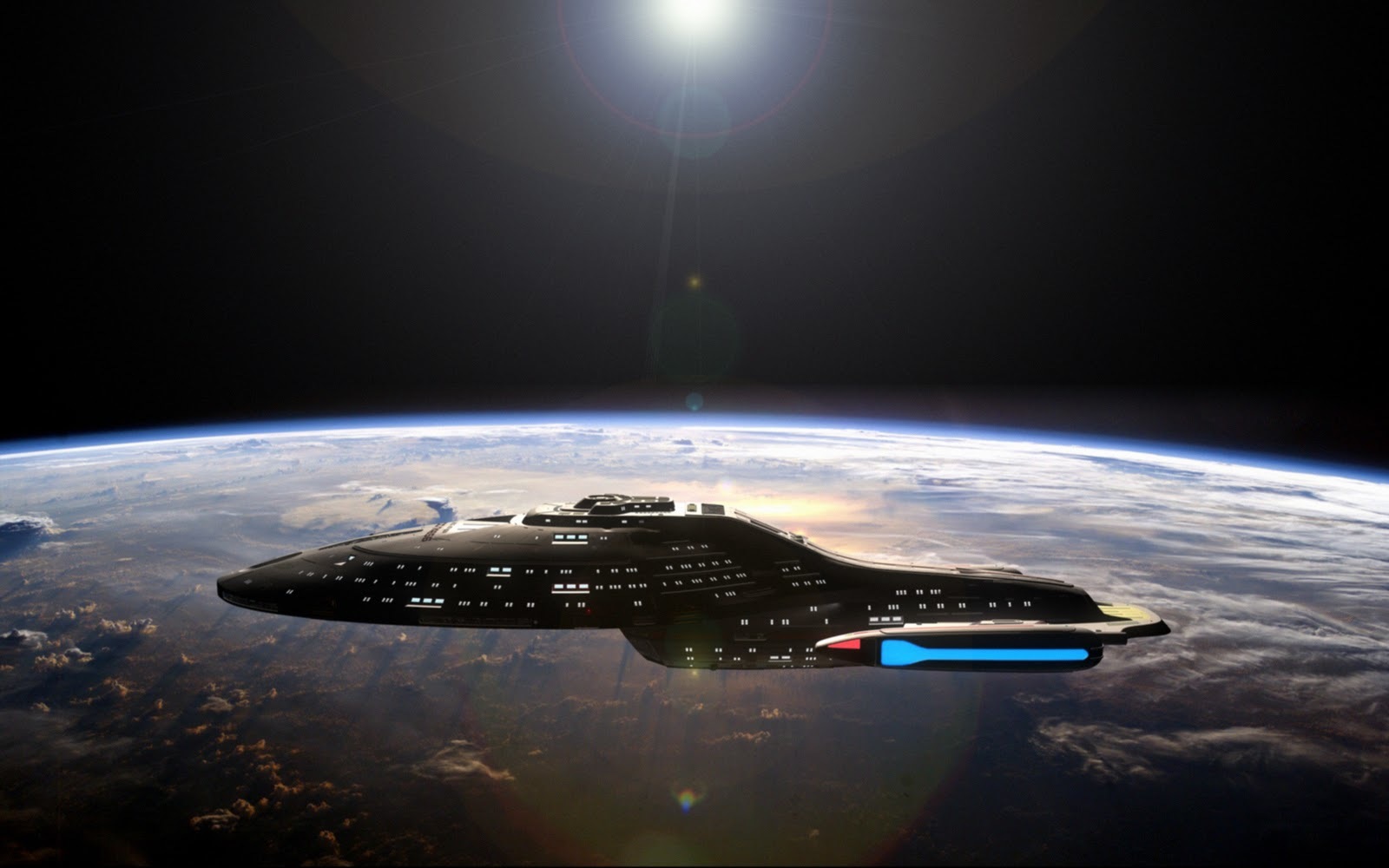 An Intrepid-class vessel capable of holding 200 crew members, the U.S.S. Voyager NCC-74656 is one of the fastest and most powerful starships in Starfleet. Although only 345 meters long, Voyager is more technologically advanced than previous Starfleet vessels. Superbly equipped for exploration and research, Voyager has an equally impressive array of defensive and offensive weapons, making it ready for action. The U.S.S. Voyager is the second of only four Intrepid-class starships built by Starfleet to date, launched in 2371 on stardate 48038.5. On stardate 48307.5, Voyager was propelled over 70,000 light-years into the Delta Quadrant from the Badlands area near Deep Space Nine by an extragalactic alien dubbed "Caretaker." The alien had been searching the galaxy for a compatible life-form with which to procreate. Voyager's assigned first officer Cavitt, helmsman Stadi, chief engineer, and doctor and nurse were killed in the transfer as well as a transporter chief and other crewmembers. Its original short mission did not call for a counselor to be assigned. Voyager is currently en route from the Delta Quadrant to Federation space. At maximum speed, however, the journey may take up to 70 years. Voyager's folding wing-and-nacelle warp drive system allows the starship to exceed the warp 5 "speed limit" without polluting the space continuum. Voyager can reach a speed of warp 9.975, but only for short periods. Its EPS system and back-up have been totally modified to employ Enaran power-conservation technology and power relays on some decks now employ Borg technology.