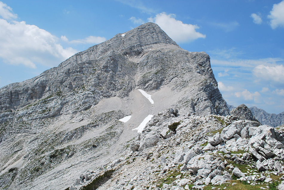 Pot naprej se prečno vzpne ob vznožju Šitne glave, nato pa se nam z desne priključi pot od Erjavčeve koče. Sledi še kratek strm vzpon in pot nas pripelje na preval Vratca (1807m), kjer pridemo na naslednje razpotje. Nadaljujemo levo v smeri Mojstrovke (naravnost Slemenova špica) po poti, ki poteka pod ostenji Šitne glave.