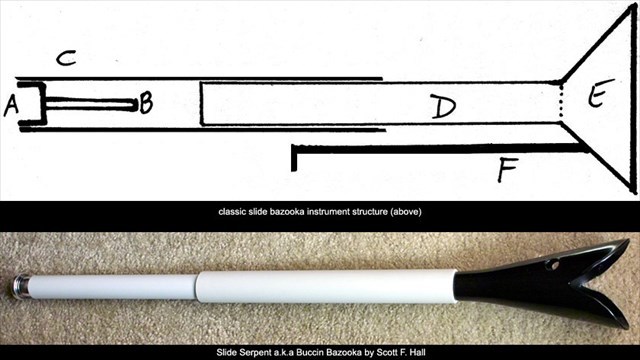 The nickname arose from the M1 variant's vague resemblance to the musical instrument called a “bazooka” invented and popularized by 1930s U.S. comedian Bob Burns – you can listen to it on Youtube where it sounds like someone is blowing through a drain pipe! The word “bazooka” originates from an extension of the word “bazoo”, which is slang for “mouth” or “boastful talk” and which ultimately probably stems from Dutch bazuin (trumpet).