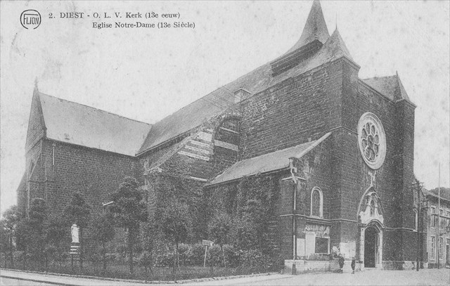 Op deze plaats stond een kapel die fungeerde als burchtkapel voor de baanderheren van Diest. Deze heren verbleven in een nabijgelegen burcht (afgebroken in 1512) op een heuvel, anno 2009 gekend als de Warande. De kapel werd voor het eerst vermeld in 1211. Ze werd, samen met haar bezittingen en tienden door de toenmalige heer van Diest, Arnold IV geschonken aan de abdij van Tongerlo op voorwaarde dat de premonstratenzers uit de abdij de kapel zouden bedienen. Haar aanstelling tot parochiekerk in 1253 en de groei van Diest maakte de kapel te klein.