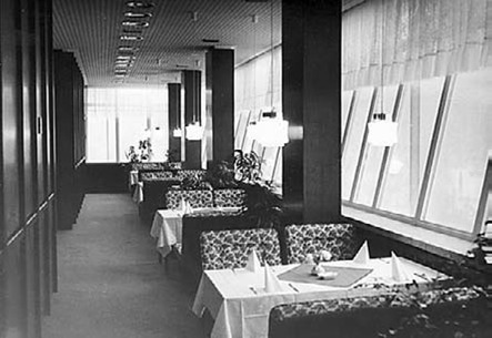 Ganz oben war das zum Gaststättenkomplex Kaluga gehörende "Cafe im Hochhaus" eingerichtet.
