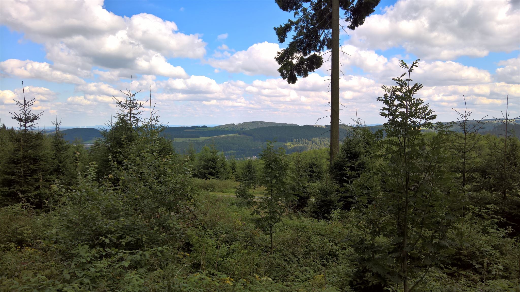 Der Weg zum Hohen Eimberg verläuft vom Wanderparkplatz aus über den Briloner Kammweg, bzw. dem Internationalen Bergwanderweg der Freundschaft, welcher die Städte Budapest und Eisenach verbindet.