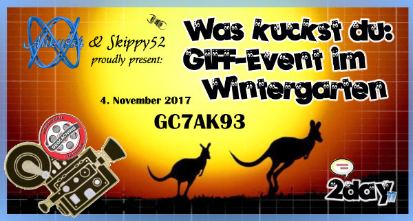🇬🇧 Since 2013 GIFF stands for "Geocaching International Film Festival" - it's an annual short film competition organized by Groundspeak. On one special weekend in autumn the visit of an event where the finalists are shown (length about one hour) will be rewarded with a souvenir. After two years as guests we wanted to check out how difficult it could be to host our own GIFF-Event.