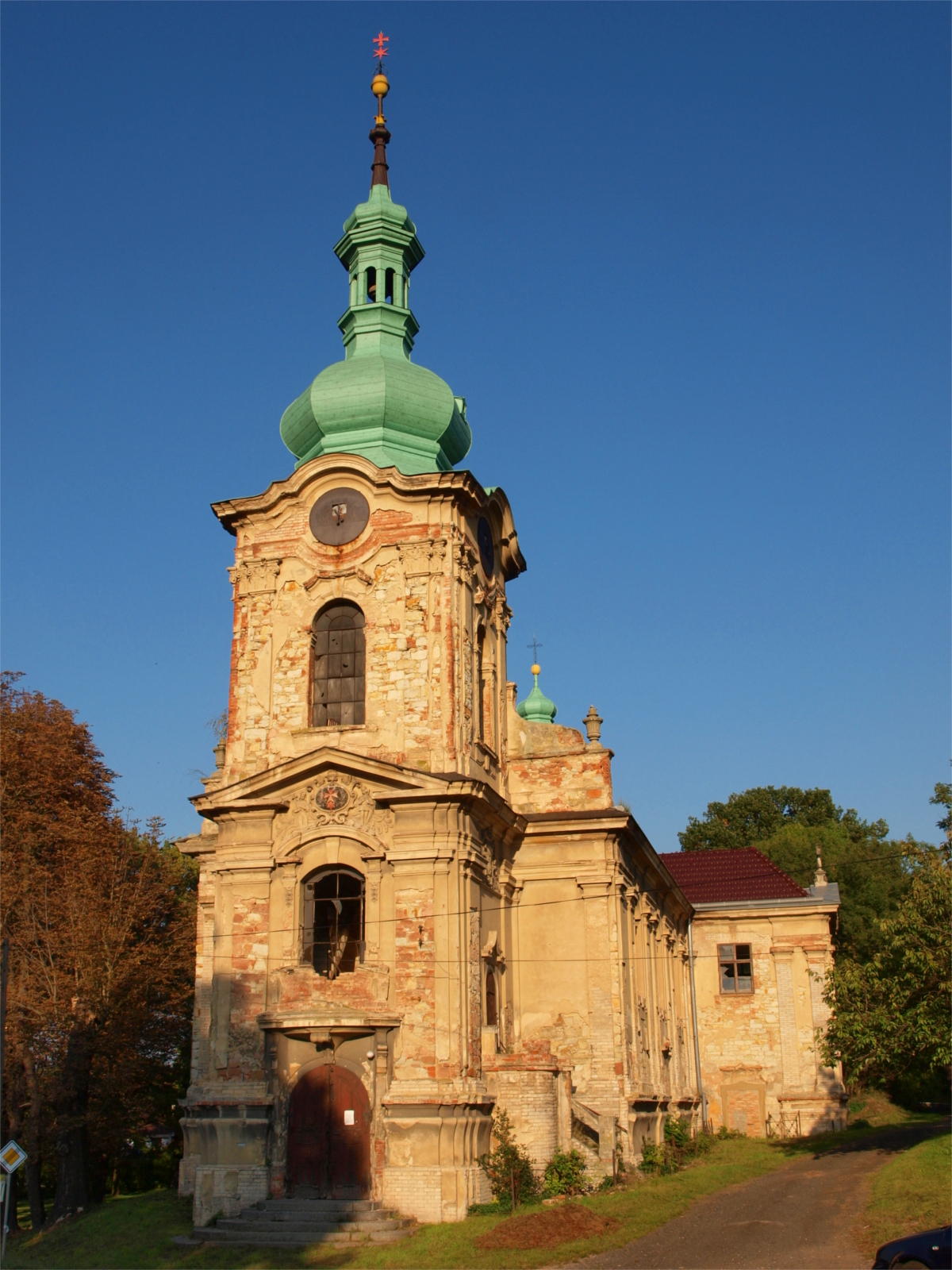 Pozdně barokní kostel, kterému je věnována tato keška, vznikl jako náhrada svého gotického předchůdce v letech 1765 až 1767. Jedná se o jednolodní stavbu s presbytářem (část prostoru kostela vyhrazená kněžím) zakončeným zevně trojboce a uvnitř segmentově, s obdélnou sakristií (místnost bočně od prebystiáře), s oratoří v patře na jižní straně a s představenou hranolovou věží v západním průčelí.