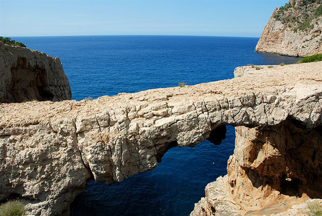 -El agujero resultante comienza a agrandar el arco por acción de la caída de grandes rocas o la acción de los agentes geológicos atmosféricos. A veces los arcos se derrumban, dejando sólo restos tirados por el suelo que el tiempo se encargará de hacer desaparecer.