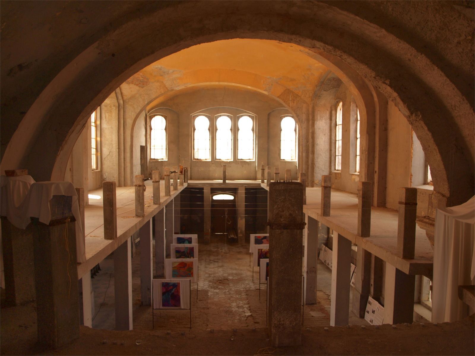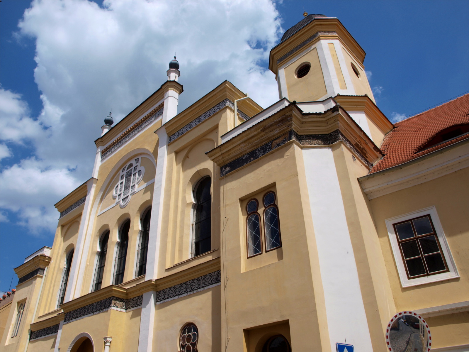 Pohled na synagogu a její vnitřní prostory (červenec 2017)