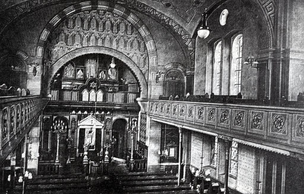 Jediná dochovaná fotografie původního vybavení interiéru synagogy
