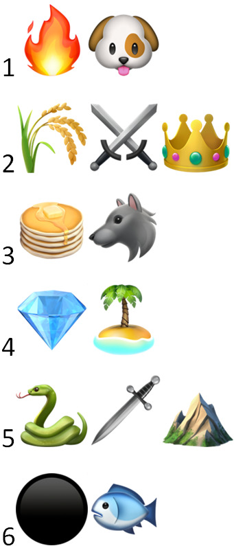 Die Welt um Westeros und Essos bietet Einzigartige Charaktere und Orte, die mit wenigen Emojis beschrieben sind.