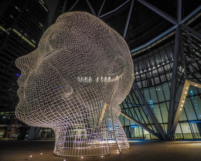 Located at the base of The Bow, the city's second (soon to be third) tallest tower, Wonderland is a white, bent-wire sculpture of a young girl’s head: Anna, from northern Spain, at age 12. Standing almost four storeys tall from the neck up, the sculpture has two openings that allow visitors to walk through the model, “to try to dream about how a head is from inside.”
