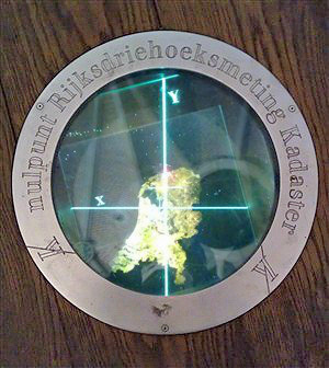 As a reminder of the tower serving as ground zero of the Dutch Grid, a work of art was created in the floor of the Onze Lieve Vrouwe-tower at the point where the X axis and the Y axis crossed. (not always accessible, but you can take a peek when the door is open).