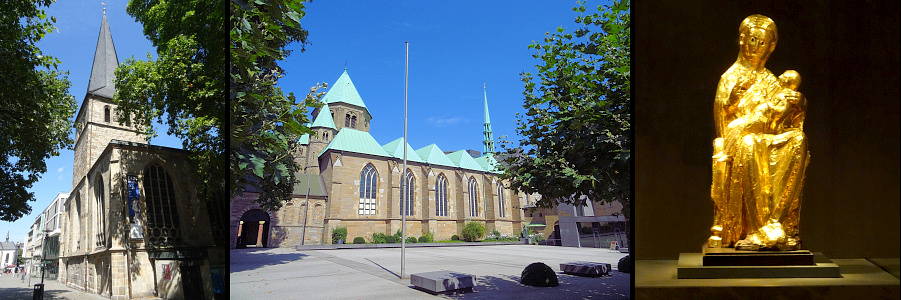 Vom mittelalterlichen Erbe Essens blieben im Herzen der Stadt die Münsterkirche Ss. Cosmas und Damian, die Anbetungskirche St. Johann sowie der Kreuzgang erhalten. Der Essener Dom ist aufgrund seiner Jahrhunderte alten Geschichte und Bedeutung für die Stadt in jedem Fall einen Besuch wert. Neben der weit über die Grenzen des Ruhrgebietes bekannten "Goldenen Madonna", die etwa im Jahr 980 entstand und eine der frühesten Plastiken des europäischen Mittelalters ist, und dem "Siebenarmigen Leuchter", der die älteste erhaltene christliche Nachbildung des jüdischen Tempelleuchters ist, gibt es hier vieles zu sehen und zu bewundern. Wichtige Hinterlassenschaft der Frauengemeinschaft ist der über Jahrhunderte gewachsene Stiftsschatz, der zahlreiche, bedeutende Kunstwerke beherbergt und unbedingt einen Besuch wert ist. Zudem laden der Dom und der Kreuzgang ein, dem Trubel der Stadt zu entfliehen und ein wenig Ruhe zu tanken.
