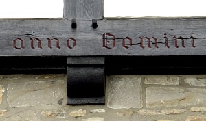 Die Jahreszahl im Holzbalken minus der Jahreszahl im Steinbogen darunter ergibt L.