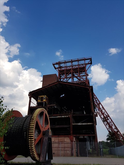 Klar, hier bisse aufm Pütt, aber watt is datt große stählerne Dingen da vor dich und welche Nummerierung hat et auf der Weg- Info -Tafel?