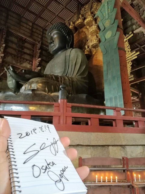3. Take a picture of the paper (or note pad or smartphone, or tablet ) and the Great Buddha in the same shot.