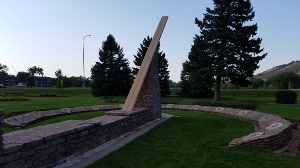The posted coordinates take you to the front of a large stone sundial in the William Noordermeer Formal Gardens of Sioux Park, named after the Rapid City park superintendent who served from 1965 - 1985. Mr. Noordermeer was involved in the design and implementation of many of the beautiful gardens in town, including this one. The park hours are 6:00 am to 10:00 pm. Please do not visit this location outside of those hours.