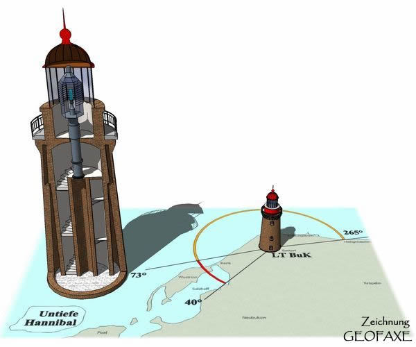 The light house of Bastorf is situated on the Bastorfer Signalberg [literally spoken as signal hill of Bastorf]. This little hill has an altitude of 78,8 m above sea level. In respect of its location above Kap Bukspitze [Kap Bukspitze] it is also named Buk. Its international identification number is C1400. Built in 1878 with a height of 20,8m, it is the smallest light house of Germany, but thanks to its geographical position, it shows the highest bonfire[95,3m] of all light houses along German coasts. [in comparison: lighthouse Dornbusch of Hiddensee: 95m] Merely the bonfire of Travemünde [114,7m above sea level] excel in height, but this one is situated onto the roof of the Maritim Hotel. The light house of Bastorf serves two purposes: first, give orientation for seafaring the western part of the Baltic Sea and second (and this is the primary purpose) to red-flag the