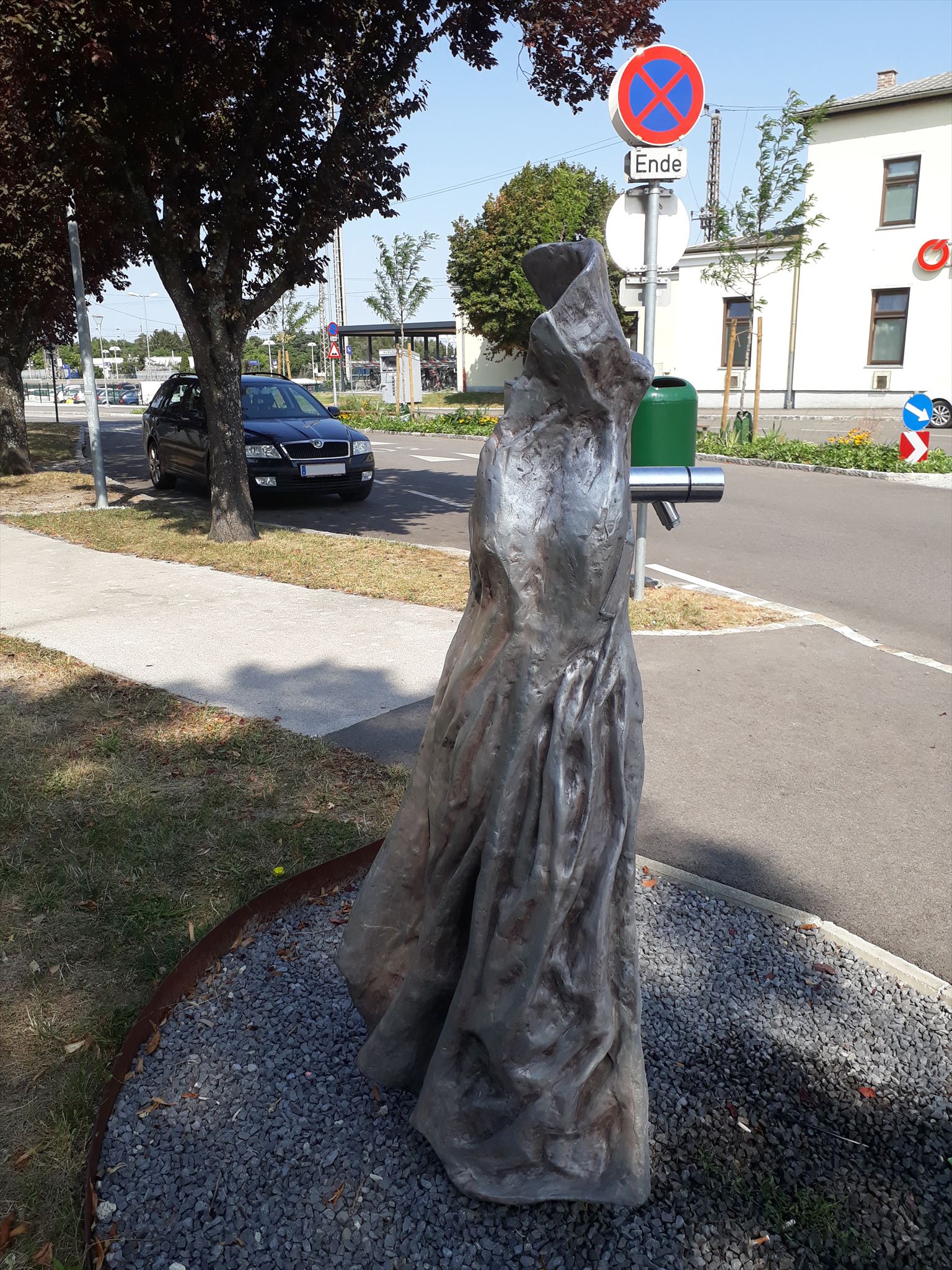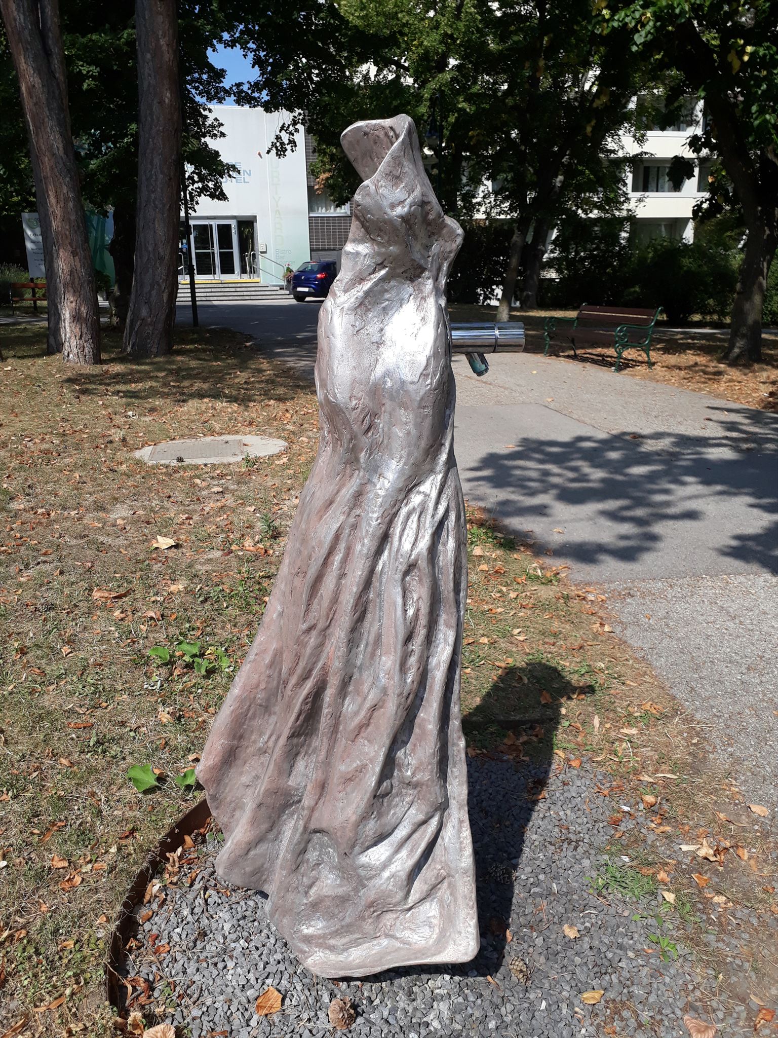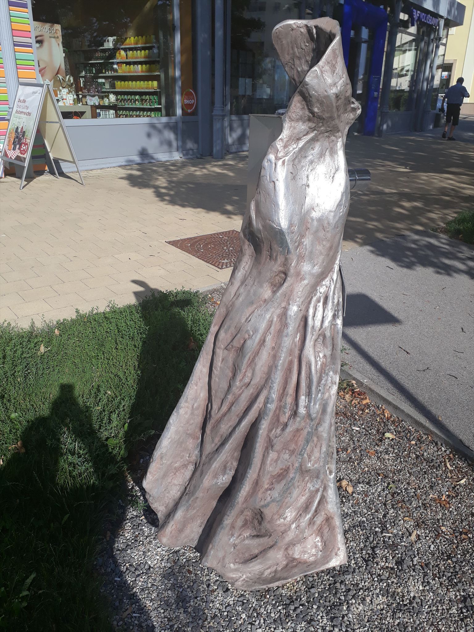 The design of the drinking fountain is reminiscent of soft flowing fabric, like a fine dress. At each sculpture there is a sign with a word on it, which is meant to stimulate reflection and questioning of the common good "water".