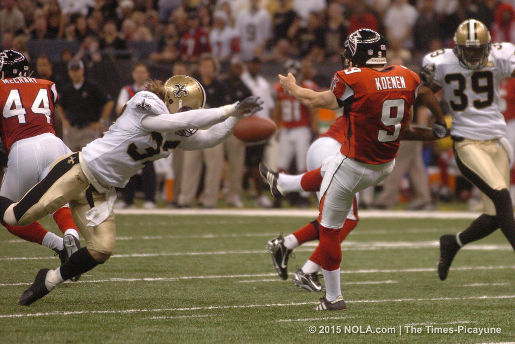 After failing to convert a first down, the Atlanta Falcons lined up to punt. Steve Gleason ran a stunt around center and came into the backfield almost completely untouched. Gleason stretched out completely, blocking the punt and sending it bouncing back toward the Falcons' end zone. The Saints recovered in the end zone for a touchdown. Within the first two minutes of the first game back in the Superdome, the Saints were back with a vengeance. They went on to win the game running away.