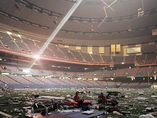 On August 29, 2005, Hurricane Katrina devastated the New Orleans area. Around 9,000 people took shelter in the Superdome as the city was literally washed away around them. Even the Superdome wasn't spared, as a giant hole was ripped in the iconic roof.