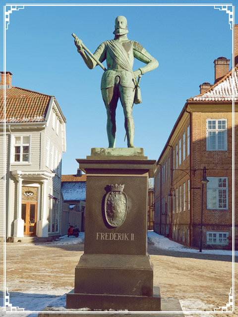 En statue av Frederik II, utført av Wilhelm Rasmussen, ble i 1917 reist på torget i Gamlebyen i Fredrikstad.