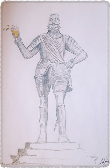 Francis Bull om statuen av Frederik II i Fredrikstad: "Det er den beste statue jeg noen gang har sett - med en drankers ansikt. Han står jo formelig og svaier på statuen."