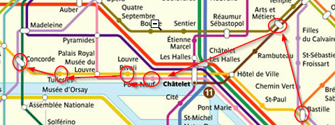 You can travel along the stations in the order you want, but it is possible to optimize the route depending on the metro lines and platforms to visit. Be careful, a small challenge can be proposed in the station Louvre-Rivoli, because you can not swipe your badge 2 times in less than 8 minutes (a badge reader is at the beginning of each platform !) So calculate well your number of round trips to get the clues and start again in the right direction: D