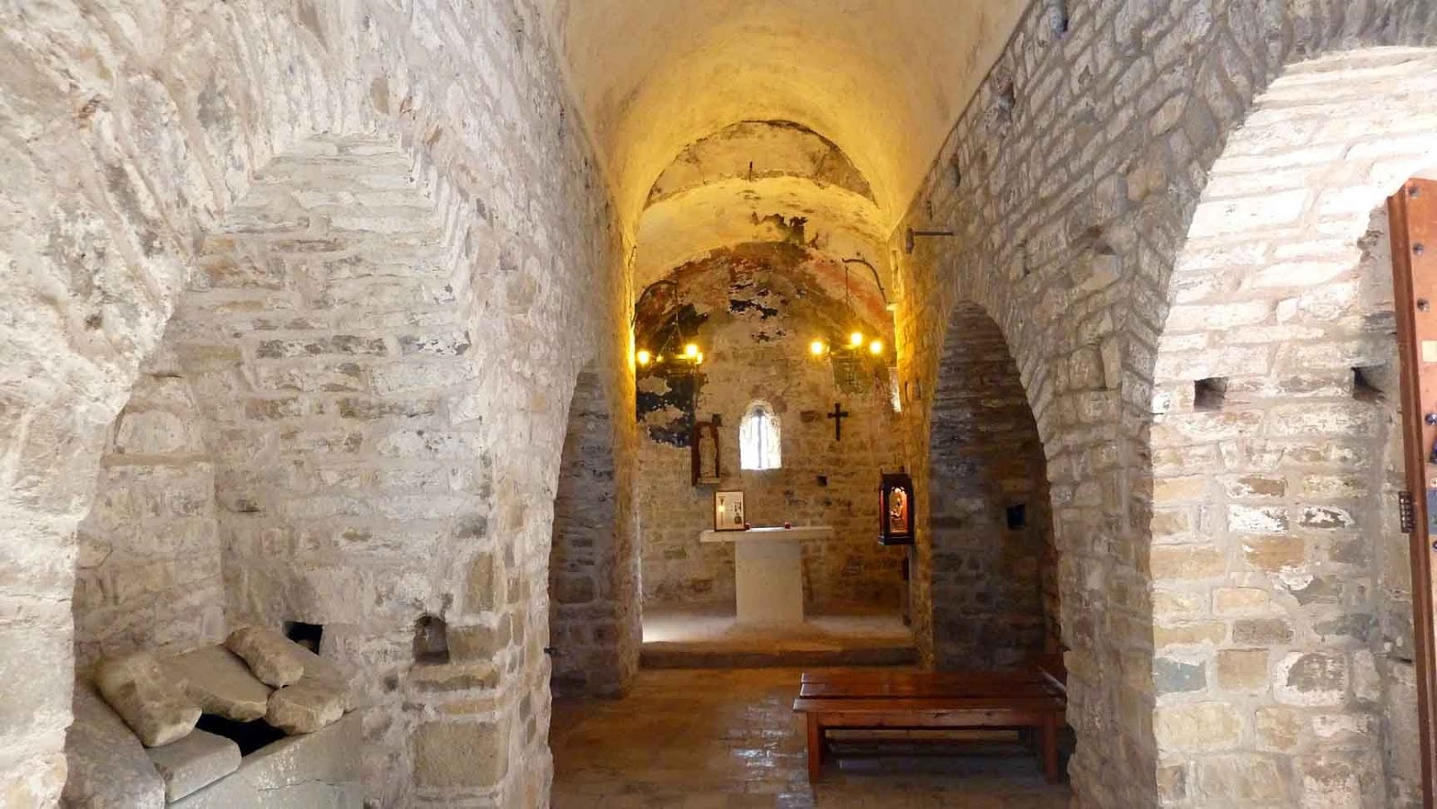 A causa de l’ensorrament i davant de la inclinació del mur de tramuntana van decidir la construcció de l’exagerada estructura de reforçament que avui podem contemplar. Amb aquesta estructura també van construir la nova volta apuntada.