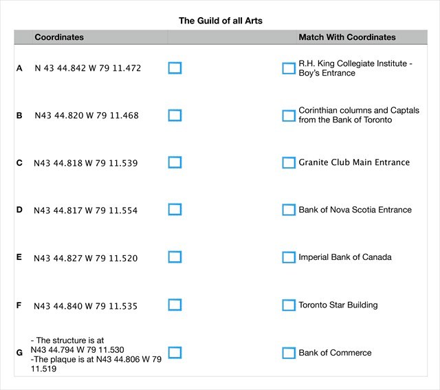 1) Visit each of the waypoints below and match it with one of names of the various building structures listed and send me your answers.