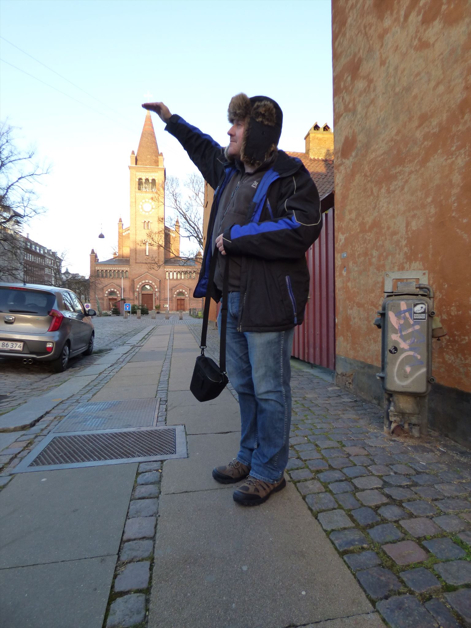 To help you feel like a giant, and to log this cache, you must take a photograph of your hand "on top" of the spire. See my examples for how it can be done either by a friend, or as a selfie. As long as we can see your hand on top of the spire, and we can see that it really is Sankt Pauls Kirke, you can log the cache.