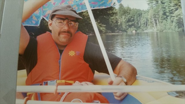 And now…. Let me take you back to Aug 1996, Doc was 2 1⁄2 years old. When he was small we could still get him around easier, not like the huge wheelchairs in later years. Even then his ‘Gorilla Stroller’ had ropes on the front for one parent to pull and one parent to push, and boy did we take him places regular wheelchairs didn’t go. We were told by other campers and staff there was amazing pictographs on Rock Lake. Described as being down the lake a few klms and hang a hard right, and right on the corner on the sheer rock wall you will see them. We couldn’t take Doc in a regular canoe, too tippy, so we bought an inflatable boat, it was one of the more expensive ones, 7 compartments, couldn’t afford to ‘pop it’ in the middle of the lake with a kid that couldn’t swim. So we had 2 paddles, an anchor, and lunch for all of us, meds for Doc for the morning and lunch time. We also had a big beach umbrella, he burned easily. Didn’t really need 2 paddles, because one parent had to hold Doc upright while the other paddled.